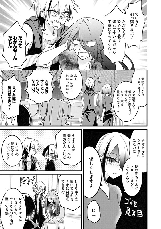 ナオが大好きでヴィジュアル系文化に興味津々のレイラと、彼女をフツーに育てたいナオが巻き起こす、ほっこり日常コメディ。2巻ではバンドメンバーをフィーチャーした回をたっぷり収録。