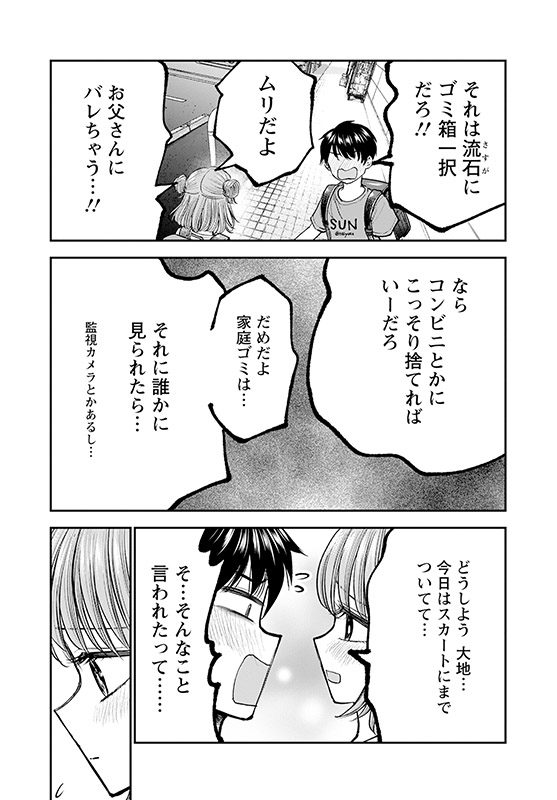 そんなある日、教室で椅子に血をつけてしまっているのを幼馴じみの同級生・大地に見つかってしまう。そして、二人で協力することに。