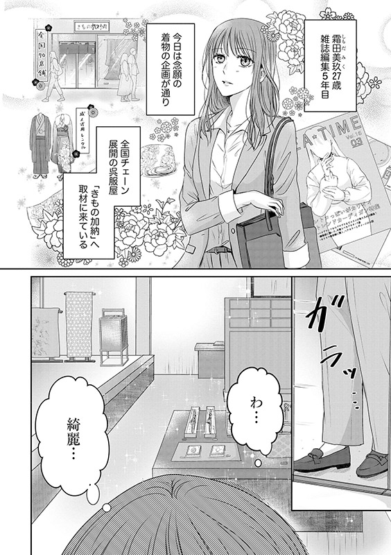 とっさに家を飛び出した美玖は、以前取材した老舗呉服屋の若旦那・葵生に助けられる。