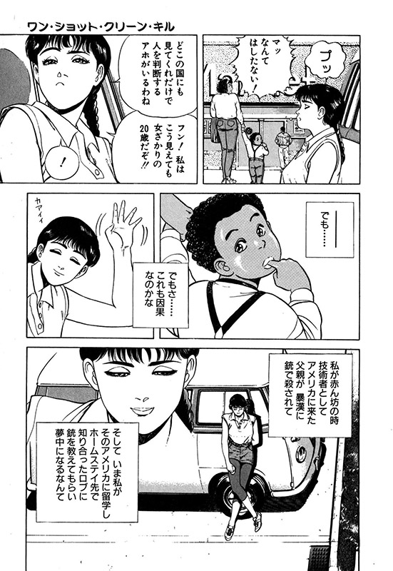 孤鷹真璃(こだかまり)、通称マリー、25歳。銃器のプロフェッショナルにして女賞金稼ぎ(バウンティーハンター)。