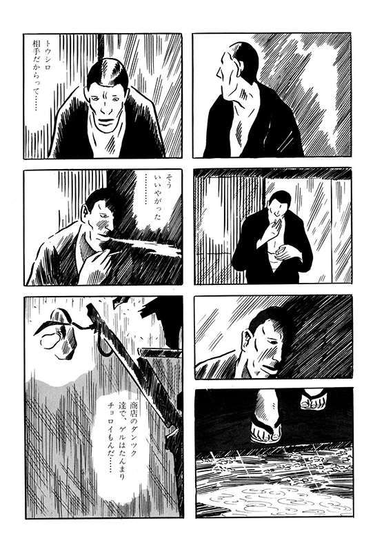 無言で並び、タバコをくゆらす二人だったが、男ははたと気づいた。そのサングラスの老人は、かつてこの街で名を轟かした「特攻サブ」その人だ、ということを。胸をざわつかせる男だったが、どうしてもそのことを老人に問いただすことが出来ない。ただ、雨が闇夜を濡らすばかりで…(表題作「狼の伝説」より)