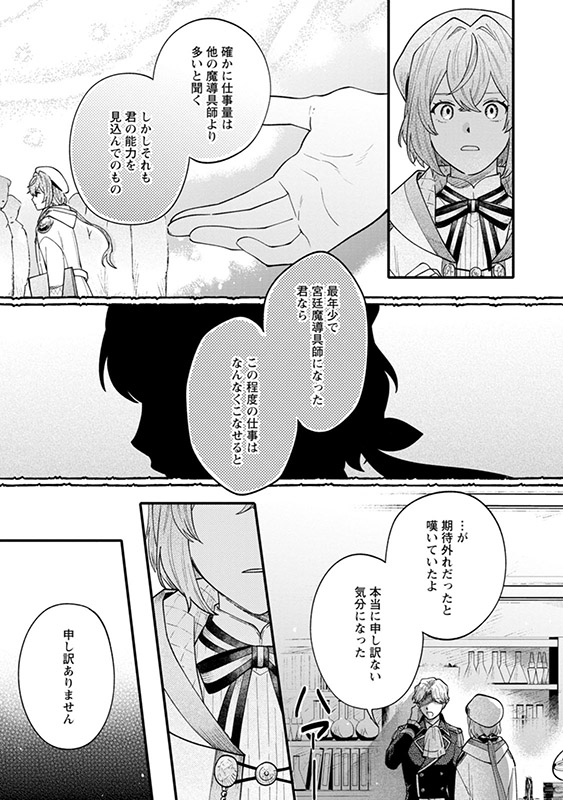 そんな中、フレアは呪いに苦しむ第二王子・ユリウスと出会う。ユリウスの呪いを抑えることに成功したフレアは、第二王子付き特別宮廷魔導具師に任命される。ブラックな職場から解放され、ユリウスの呪いを解くために動き出したフレアだったが…。