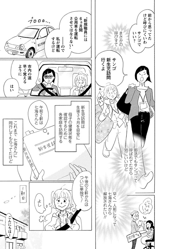 「夜明けの図書館」の作者が描く保健師漫画! 新人の三御一花(通称:サンゴ)は、行政保健師として、地域に在住する乳幼児から高齢者までを対象に、医療・健康に関する活動や社会福祉に関する活動を行う。サンゴの実地指導者・七海さやかは元ヤンキーらしいが、アドバイスはいつも的確だ。「誰ひとり取りこぼさない」が七海の口癖だ。 そんな先輩に厳しく見守られながらサンゴは、子育てに不安を抱えるママ、メタボの独身男性などの問題に一緒に伴走し解決していく。 サンゴの粘りと根性に大注目のお仕事漫画!