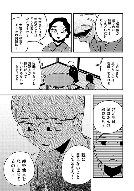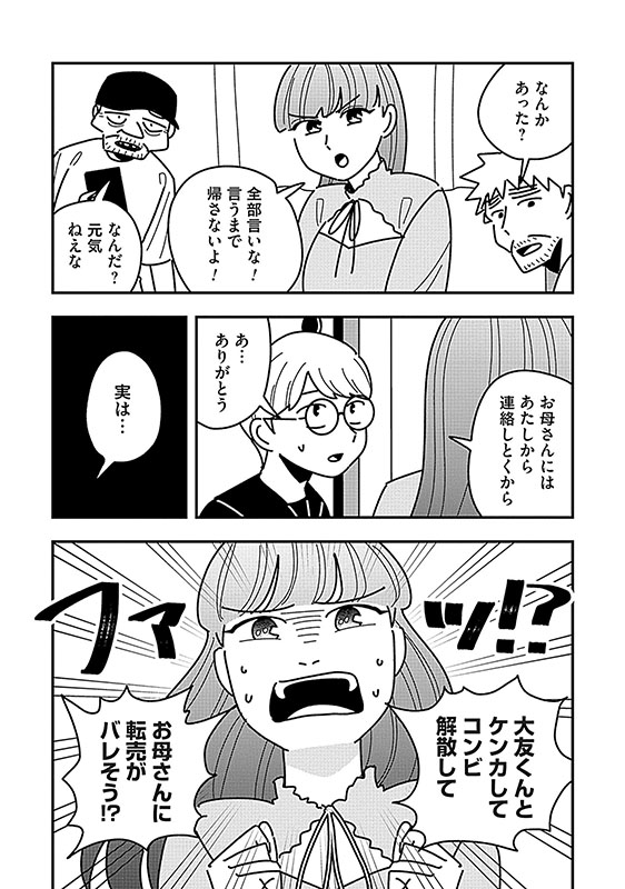 家族のため転売でお金を稼ぐ小学生の金木と転売に罪悪感を覚え始めたお気楽ニートの大友。ビジネスの方向性で二人は大ゲンカ!! さらに家族に秘密にしていた転売ビジネスが母親にバレて失望されてしまう。思わず家出をした金木に手を差し伸べたのは……!?