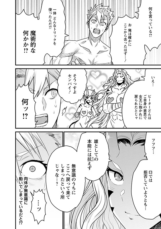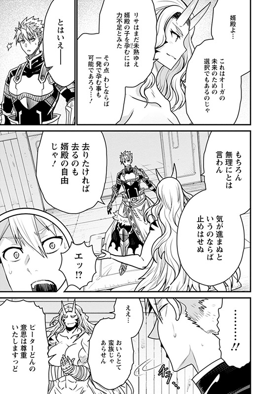 リサの婚約者としてオーガの国・オグルスタンを訪れたピーターは、女王ニナ・アルパカスに気に入られてしまい、国中のオーガたちから子種を狙われることに…。