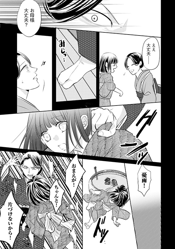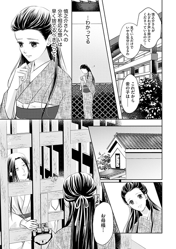 いつか自由になりたいと願う憂雨だったが、座敷牢に○○されている母を見捨てられず叶わずにいた。