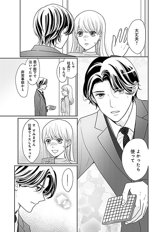 廊下でひとり泣いていた舞香に声をかけたのは、社長の佐鳥 駿だった。