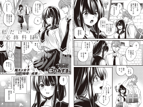 消極的であがり症な○○・百瀬は、教師である柴山先生の授業のおかげで、憧れの先輩とも付き合うことができた。 デートで先輩と水着を選びにくるも、百瀬の試着姿に彼の反応はイマイチで…。 自信をなくした彼女の前に柴山先生が訪れ、試着室で“授業”の復習が始まる――。 ディープキスから男の誘惑の仕方まで、百瀬はカラダに教え込まれた快楽を思い出し…!! ダークエロスの担い手・広乃あずま先生が贈る、内気なムチ肉少女に自信をつけるみっちり性指導♪ ※ comic ExE 47 収録作品