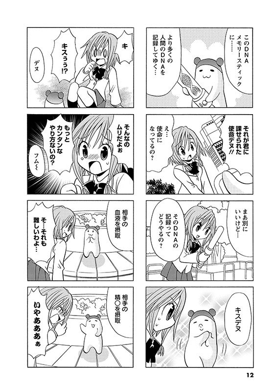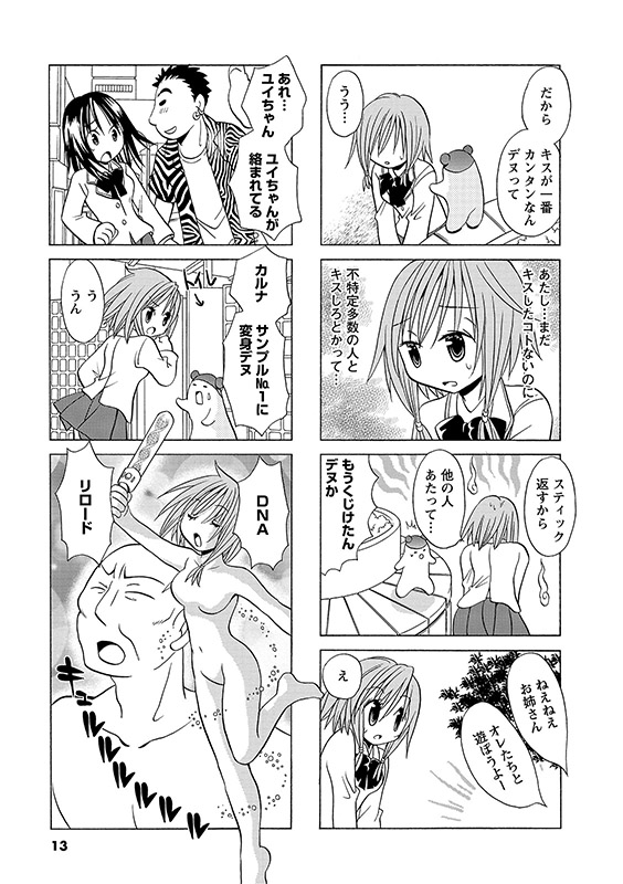 「月刊まんがタウン」にて好評連載していたドキドキ系4コマ。 ひょんなことから宇宙人デヌエと出会い、変身能力を得た女子高生カルナ。しかし、変身するには、その対象となる人物とキスをしてDNA情報を獲得しないといけないらしい…!?