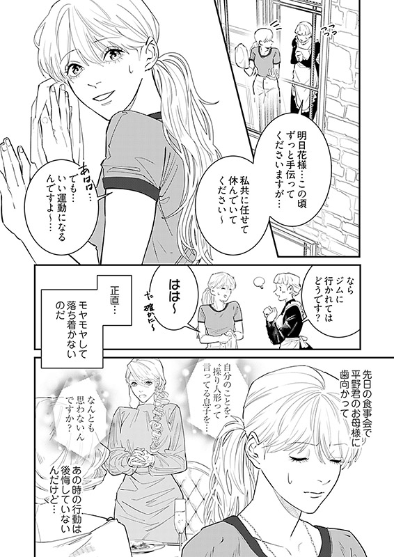 名家・七瀬家にも関わらず家庭内では愛人の娘だからと使用人のように扱われてきた明日花はいつかこの家を出て自立することを夢に生きてきた。そんなある日、食堂で大学の学長の息子・平野孝弥にぶつかられてそれをきっかけにナゼか「金を払うから俺の同伴者としてパーティーに来てほしい」と誘われ…!?