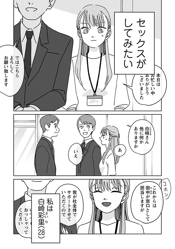 オナニーが大好きな、会社員の白崎さん。だけどこれまでの28年間セックスしたことがなく、痛くて自分の中に何も入れられないことに悩んでいた。誰かとセックスしたら入れられるようになるかもしれない!そう考えた白崎さんは、会社の後輩で高身長な渡瀬くんに「私とセックスしてくれませんか?」と提案してみるけれど…!?