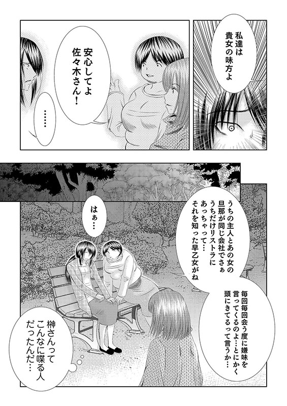 「私は勝ち組なのよ…私が一番なのよ…」近所のママの頂点だった早乙女未優はみすぼらしい姿でブツブツ言いながら歩いている。近所のママ友からは嘲笑され、数ヵ月前の美しかった姿はもうない。