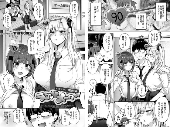 オリジナルギャルゲーを制作中の主人公・守川(もりかわ)は徹夜で作業をしていた。「俺が信じられるのは二次元美少女だけ!」そう息巻いてその日は眠りについた。翌日、学校へ行くため外へ出ると守川の作っているギャルゲーと同様、すれ違う女の人全員の頭上に好感度と性的興奮度を表す『ラブメーター』が見えるようになっていた!!つまり、学校へ着けば自分のことを好きな女子がわかるはず!そう思った守川だったが、現実は非情…一人として守川に興味を持つ女子はいなかったのだ。そんな中でも唯一ラブメーターが50%あったクラスメイトの美少女・家近(いえちか)チカとなんとかセックスにまで持ち込み、保健室の先生までもが乱入でハーレムルート待ったなし!さらにはギャルの鬼龍院(きりゅういん)あゆなも守川とのセックスの虜にvそんな絶好調の守川が調子に乗って取った行動とは…?