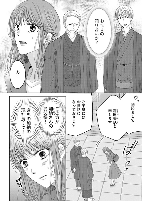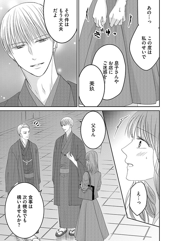 とっさに家を飛び出した美玖は、以前取材した老舗呉服屋の若旦那・葵生に助けられる。