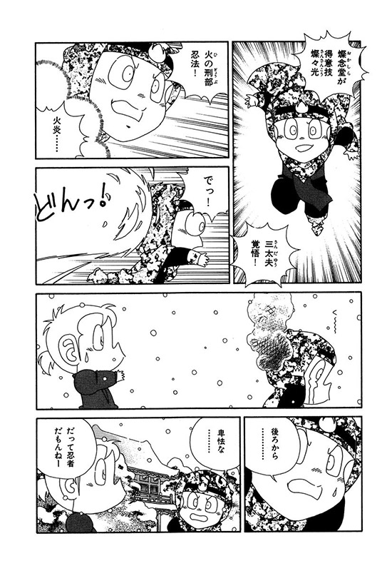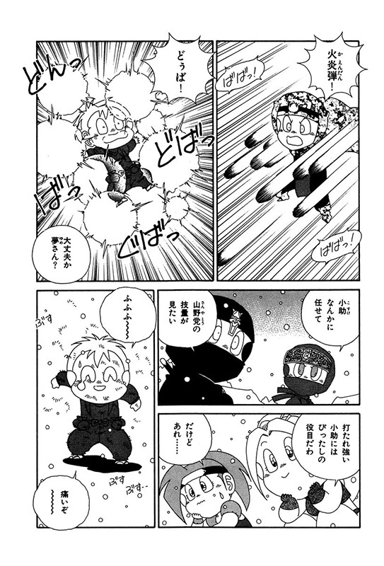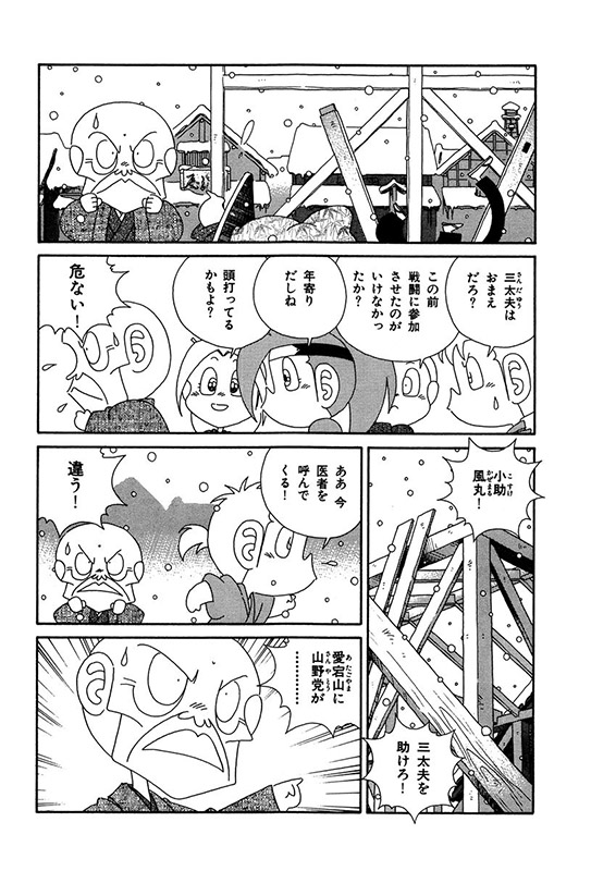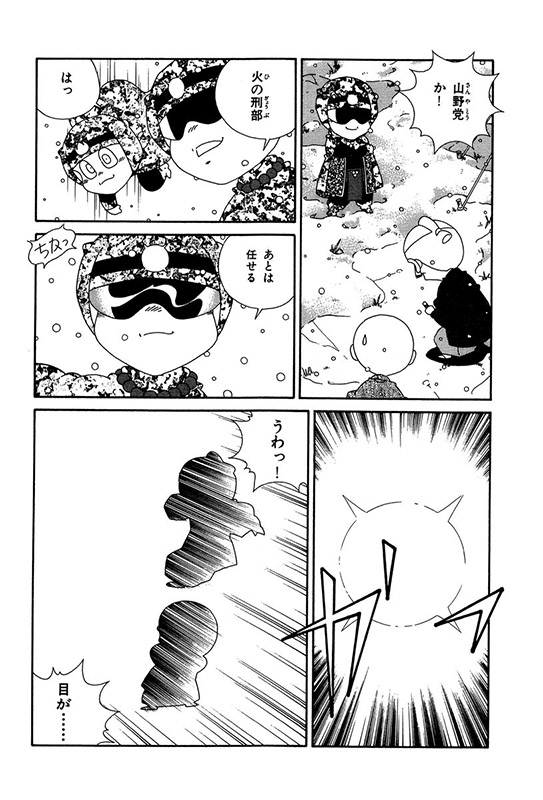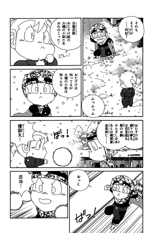ほどなくして真血達磨党による村人消失事件が起きる。捌足半蔵は、次に狙われそうな村におたすけ組を送り、その道中で山野党に襲われたおたすけ組は、金吾郎作の新兵器で山野党を撃退。