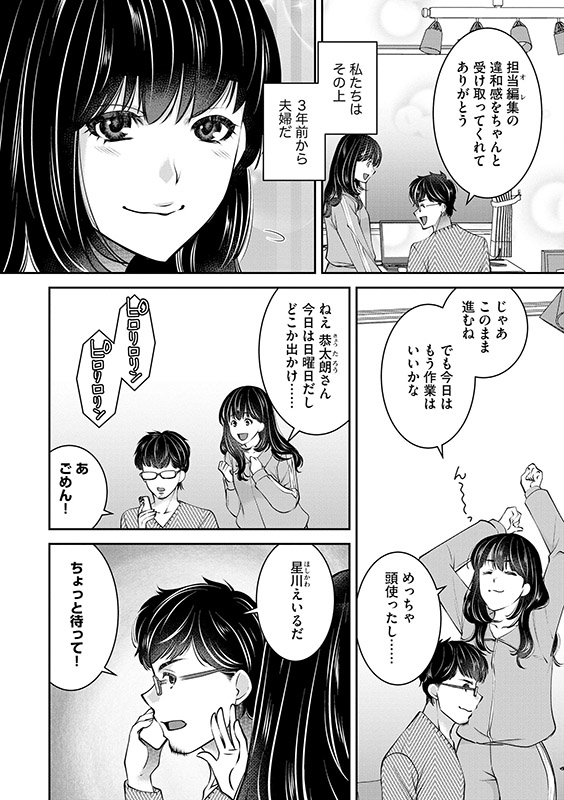 担当編集者の恭太郎と結婚をし、公私ともに順風満帆。