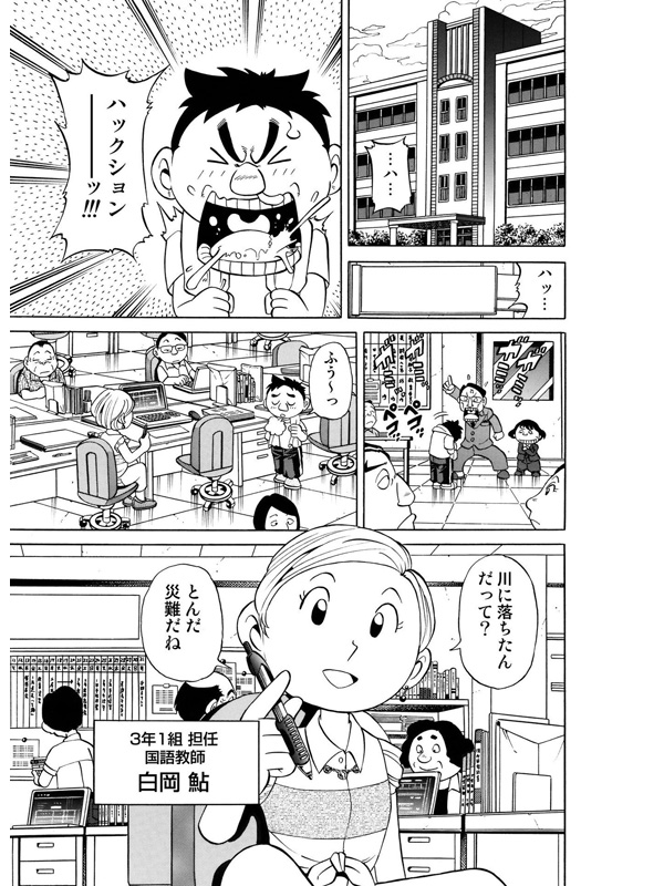 コミカルなタッチで描かれたキャラクターたちの人間模様。著者本領発揮の教育(釣り?)人情ロマン!