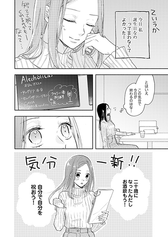 二十歳の誕生日に彼氏と破局した翠(すい)。暗い気分で一日を終わらせたくなくて、楽しく人生初飲酒!…をしたものの、目に入るのは楽しそうに寄り添う恋人たち。