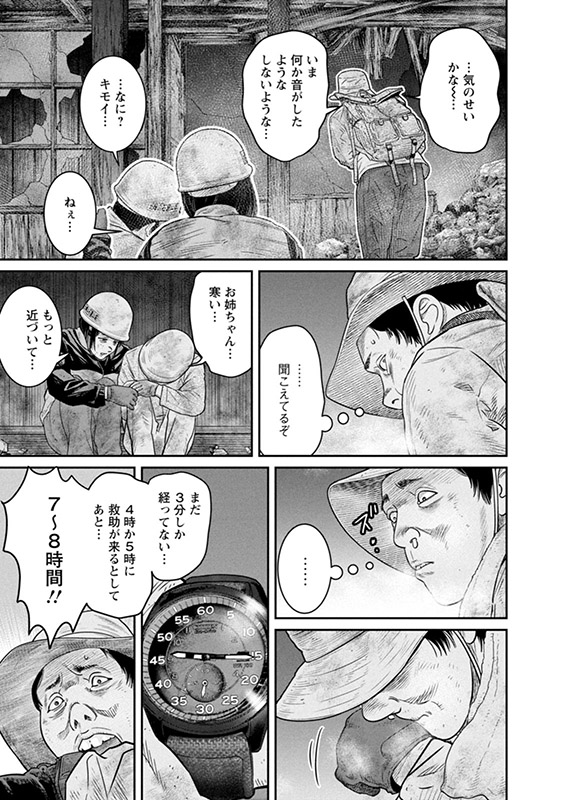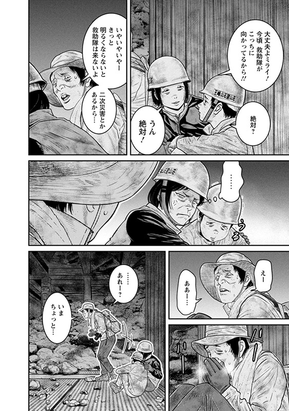噴火から一夜明け、捜索2日目。ついに石窟山荘内で生存者が発見される。再び希望を持ち始める中、おはち山荘へ捜索に向かったイッキたちは、あることに気づく…。