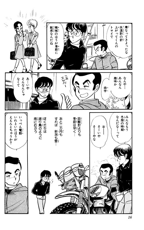 由宇はこの単調な生活から抜け出すために、左回りの行動を初めてとる。それは、買い与えられて放置していたバイク、ヤマハ・セロー225に乗ってひとり、旅に出ることだった…!