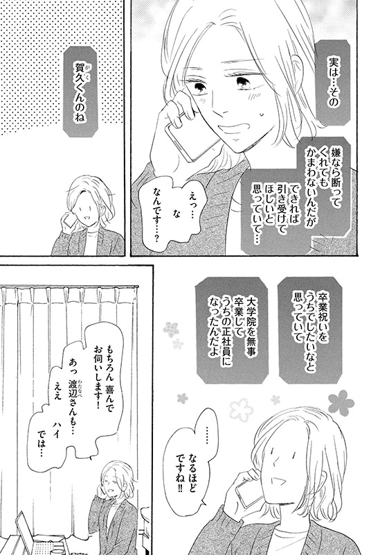 兼松もまた、英恵に対して特別な感情を抱き、紆余曲折を経て仕事相手から恋人になったふたり。