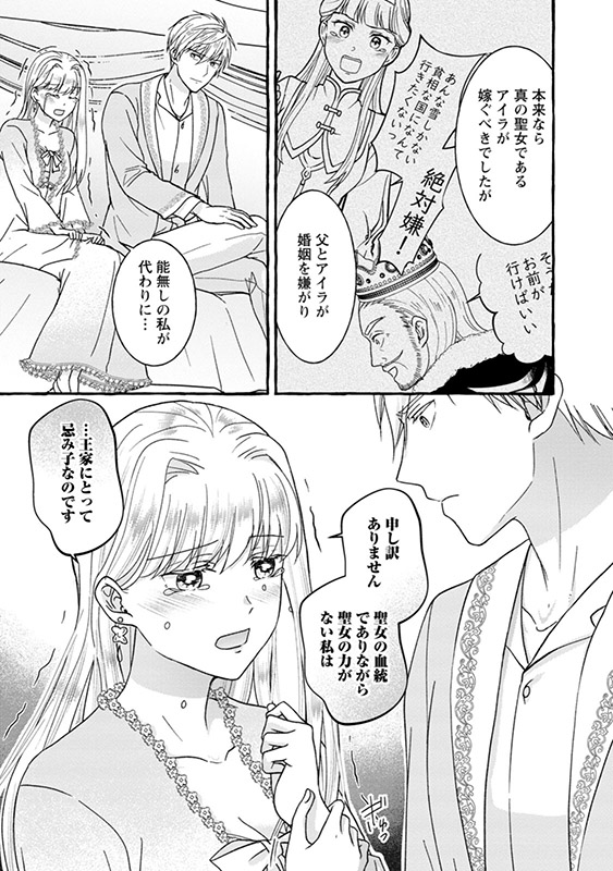 聖女を求める敵国ティエラリアに妹の身代わりで嫁ぐことになった落ちこぼれ聖女ソニア。