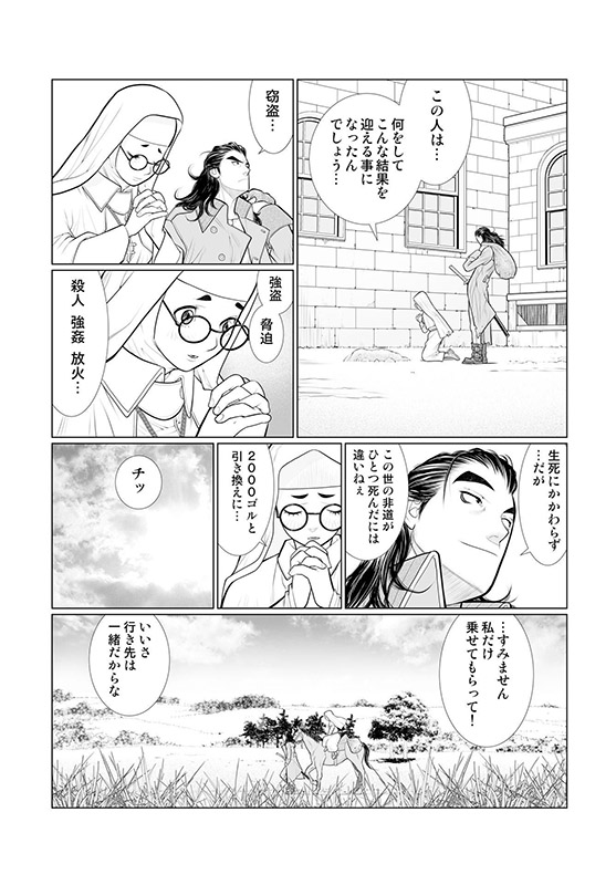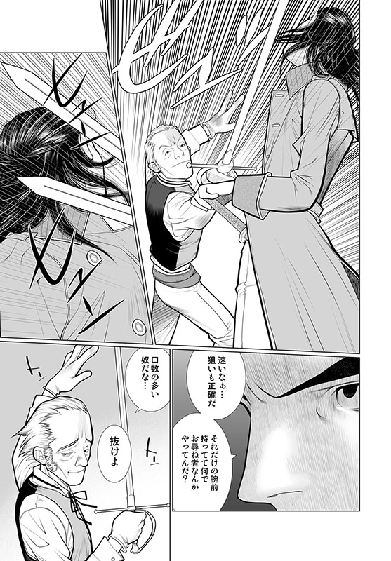 街はずれの廃墟内で男がふたり、剣をまじえようとしていた。
