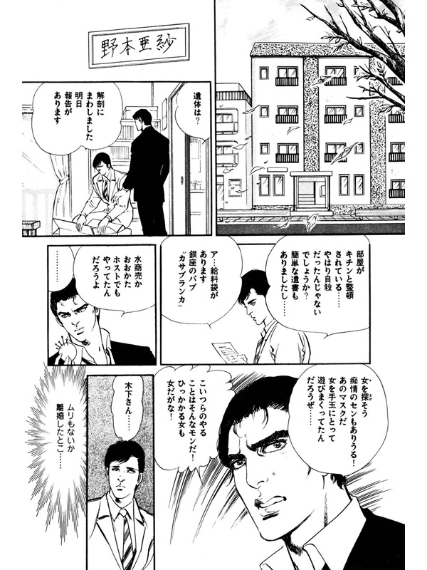 「隣の男はあんたが殺したんだ!このセンで捜査するぜ!!」――美女のように綺麗な男・野本亜紗が公園で自殺体で見つかった。○○○をあおって手首を切ったらしい。しかし、刑事の木下は他殺と推測。亜紗の隣人の里代子を犯人と判断し、事件として捜査を進めていく。