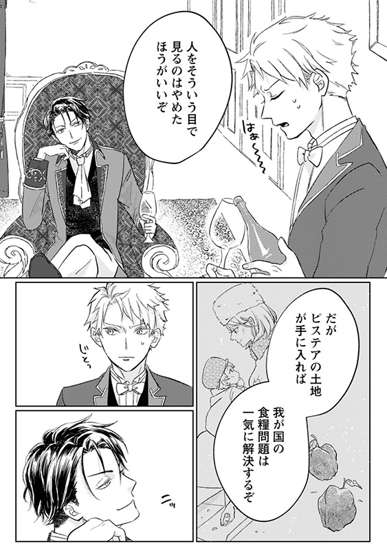 「ピステア国は俺のものにする」エクルード王国の王子・グランの企みを耳にしてしまったニフェーリカ。自分の復讐のためにグランを利用しようと考えたニフェーリカは、お互いに手を組もうとグランに提案する。