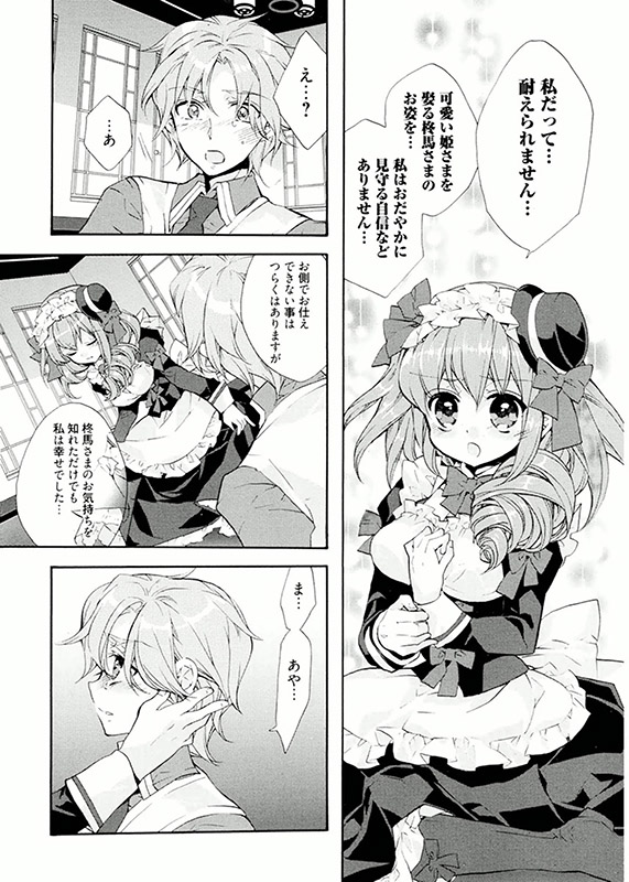 泣く柊馬に対し、真綾は「むしろこれでよかったのかも知れません。この先、可愛い姫さまを娶る柊馬さまのお姿を、私はおだやかに見守る自信などありません……」と目を伏せ、お互いの気持ちが通じる。そして……(はなかんむり)