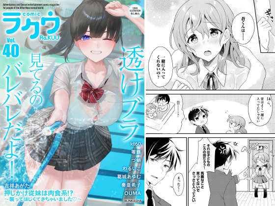 プール掃除でびしょびしょに濡れてしまい開放的な気分になっちゃってる○○のイラストでお届けする、エッチと癒しのコミック誌『コミックラクウ』第40号!