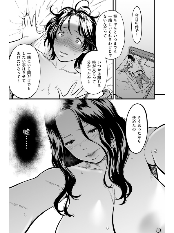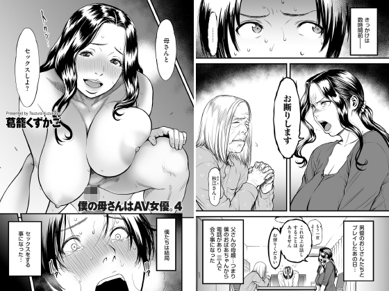 僕と母さんは本番だけはしないという約束で、いつも僕のオナニーを手伝ってもらっている。 でも、ある日突然僕のおばあさんが、僕を引き取りたいと訪れてきた。 母さんがAV女優であることを知って、僕に悪影響を及ぼすと考えたそうなのだ。 でも、その提案を聞いた母さんは怒ってしまい……。 ※ comicクリベロン DUMA Vol.18 収録作品
