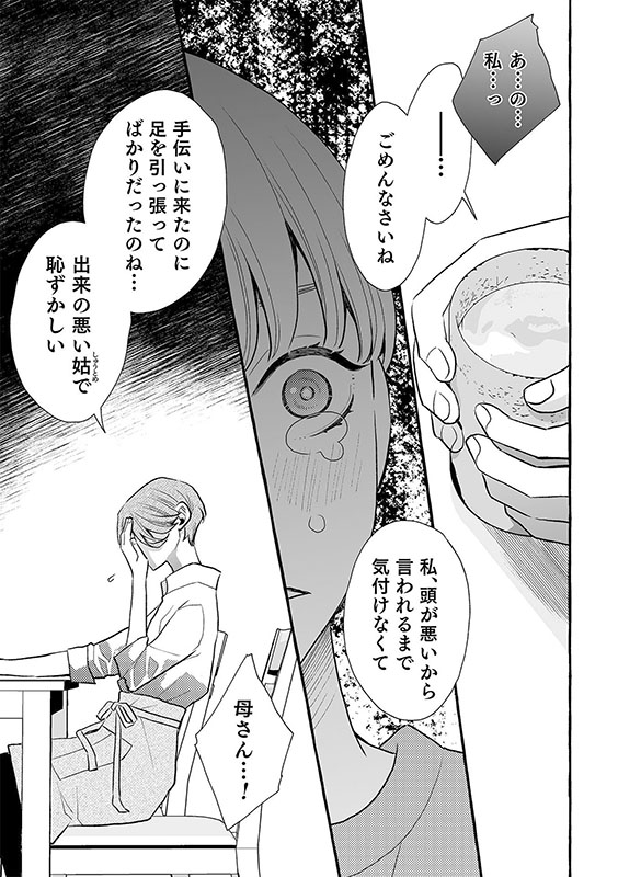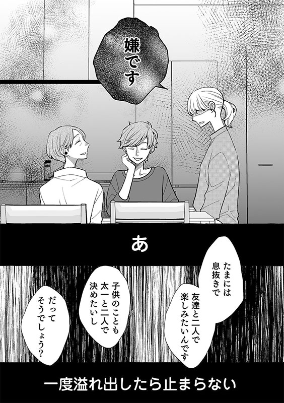 太一はお義母さんの味方。一人で抱えるのも限界で、せめてもの気晴らしに親友とお茶に行こうとすると、お義母さんも着いて来ると言う。その事がきっかけで我慢していた本音をぶちまけた私は、ますます家に居場所が無くなってしまった。