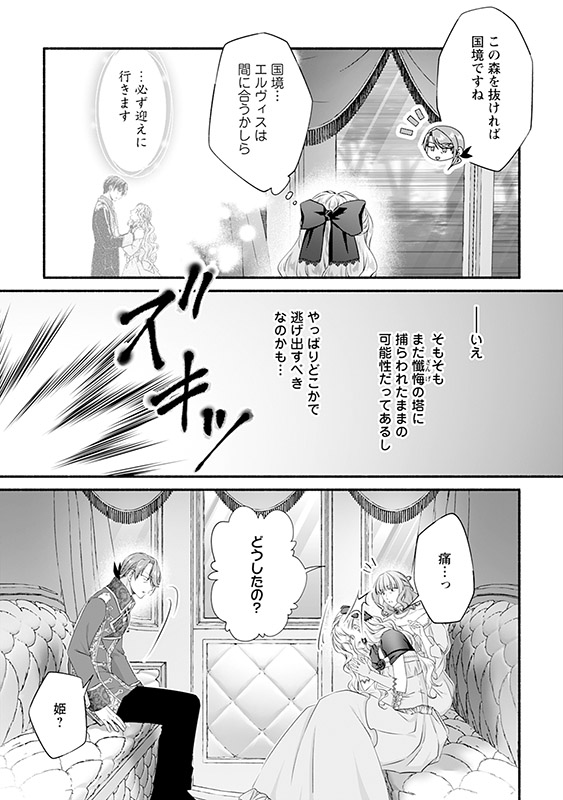 生まれ変わりの事実を告げる間もなく、エルヴィスが国家反逆罪で捕えられた! どうやら隣国王・ケヴィンの企みらしい。セシリアは愛する人を救うため、ケヴィンの望みに応じ、隣国へ向かうことを決意。そこへ母・ヘレナも同行することになった。ところが隣国へ到着目前、セシリアの命を狙う刺客が現れた! 自分のことを忘れているはずの母に庇われ、逃げ出すセシリア。敵は何者なのか、なぜ母は自分を救ったのか……。混乱しながら逃げるセシリアを、囚われているはずのエルヴィスが助けにきてくれて――。
