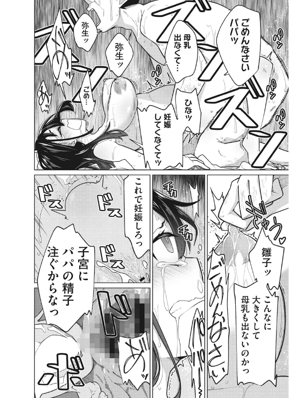 愛する妻、弥生の命日か、それとも誕生日なのだろうか、パパはできる限り早く帰宅する。待っているのは娘の雛子。即座にしゃぶり付いて、バースデイ・プレゼントの恥垢いっぱいの精子を飲む。パパは愛妻の弥生と娘の区別もつきにくく、また雛子もママを亡くした寂しさから立ち直れない。父と雛子は、誕生日を迎えた娘の年齢の数だけ挿入し、精子を注ぎ込む。(ハッピー・セックス・デイ)