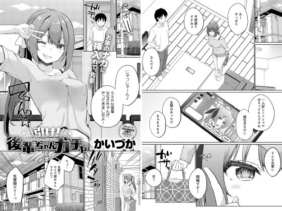 巨乳美少女の後輩・ななかが「誕生日なのに寂しい先輩に後輩ちゃんガチャを引かせてあげます」という謎の理由で、俺の家に突然押しかけてきた。エッチなコスプレ姿に着替えると強気な態度で『後輩ちゃんガチャ』を進めてくるななかだが、俺が『後輩ちゃんのおっぱいを揉む』を引き当てると態度が一変!? 急にしおらしくなり、俺にされるがままおっぱいを揉まれている…。しかし満更でもなさそうな彼女の反応に勝機を見出した俺は、「ガチャで出た」と嘘をついてフェラをさせたり手マンをしたり、そして最後はもちろん――!!