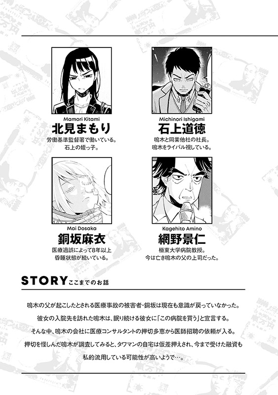 手術中に医療事故を起こして自死したとされる鳴木の父…、その父の上司であり、研修医時代の鳴木の転職を潰した極東大学病院教授・網野。そして、手術後眠り続ける被害者・銅坂。すべてのピースが揃い、鳴木の大逆転劇が動き出す…! “医師専門”の転職エージェント・鳴木金成の活躍を描く話題作、堂々完結!