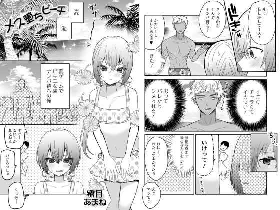 夏、海、罰ゲームでビキニ女装でナンパ待ちなシチュ。