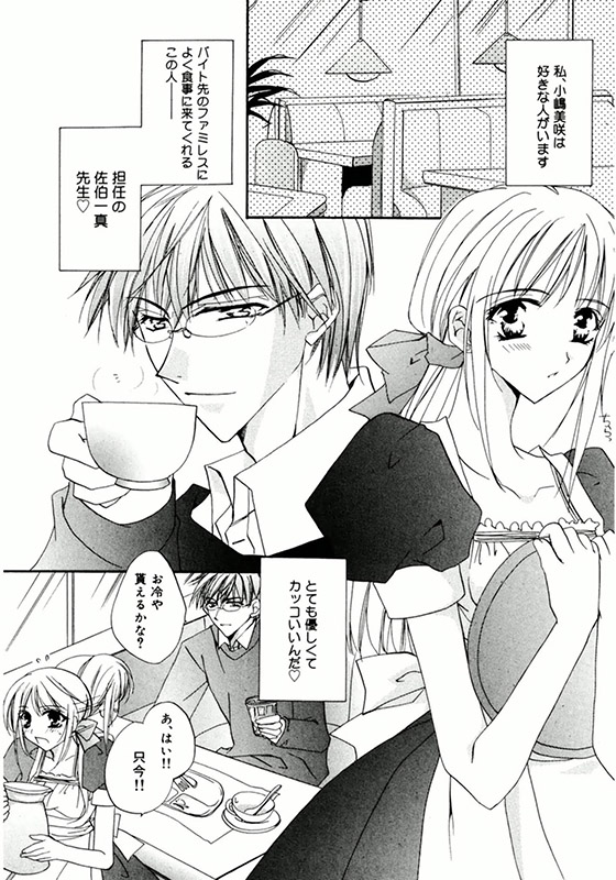 学校中で人気のある超イケメンの担任・佐伯先生は時々私がバイトしているファミレスに食事にきてくれて、優しく話しかけてくれたり気をつかってくれて「楽しい二人だけのちょっとした時間」をつくってくれる。