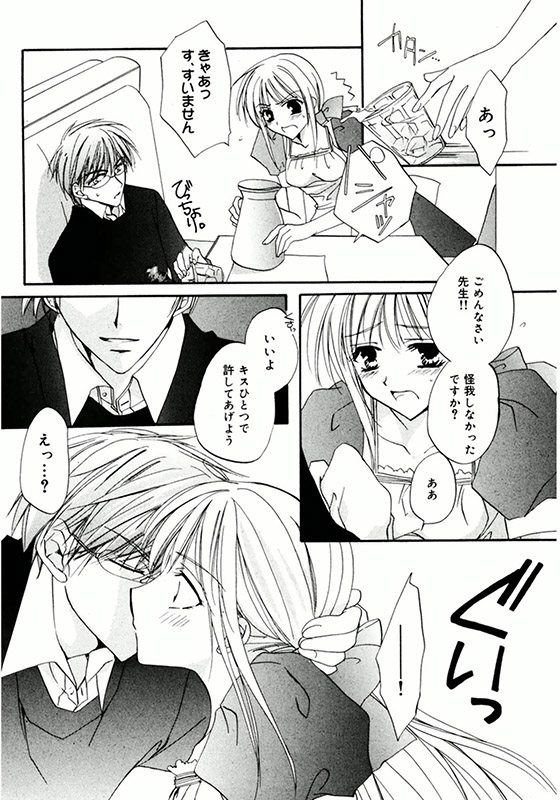 そんな先生にどんどん惹かれていく私。ところがある日、少しミスをした私に先生は優しく笑って「いいよ。キスひとつで許してあげよう」といきなり私を引き寄せ、ライトなキスをしてからくちびるをイタズラっぽく少し舐められる。先生、これって私のファーストキスなんですけど!!