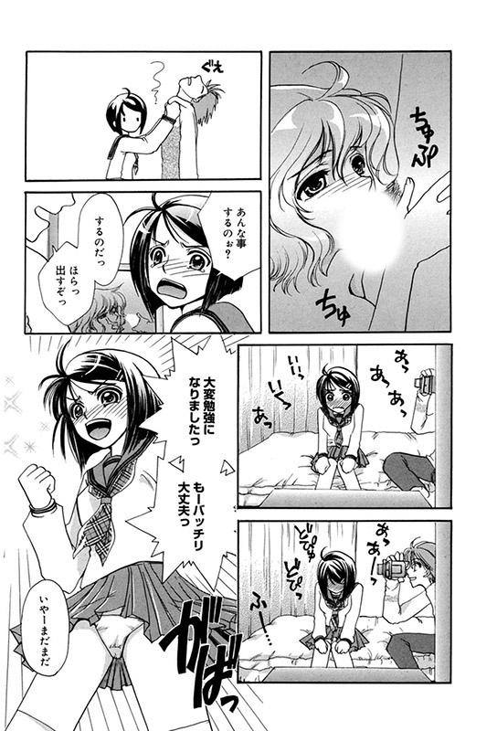 いつの間にかお兄さんはビデオカメラを持ち出して来て、ビデオ鑑賞中の私を撮影。はじめて観るAVの迫力に、いつの間にかアソコはトロトロ。しかも、昔から好きだったお兄さんにスカートをまくられて抵抗出来なくなって…