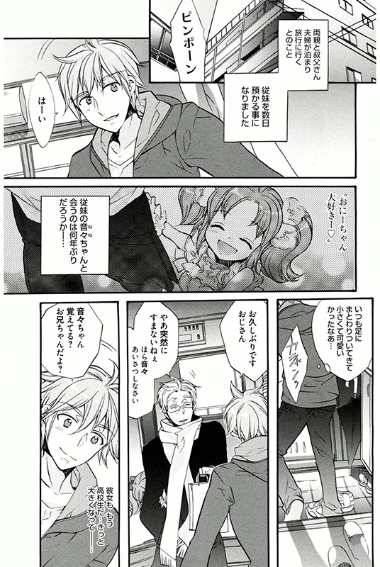 昔から大好きだったイトコのお兄ちゃんのところに、一人で泊まりにいけるチャンスが。なのに、気持ちに気がついてくれないお兄ちゃんに、コドモのフリをして抱きついて寝たふりをしていたら、お兄ちゃんはそっと隣の部屋に行ってヘッドフォンをかけ、私によく似たAVをみながらこっそり「ひとりH」を始めた。