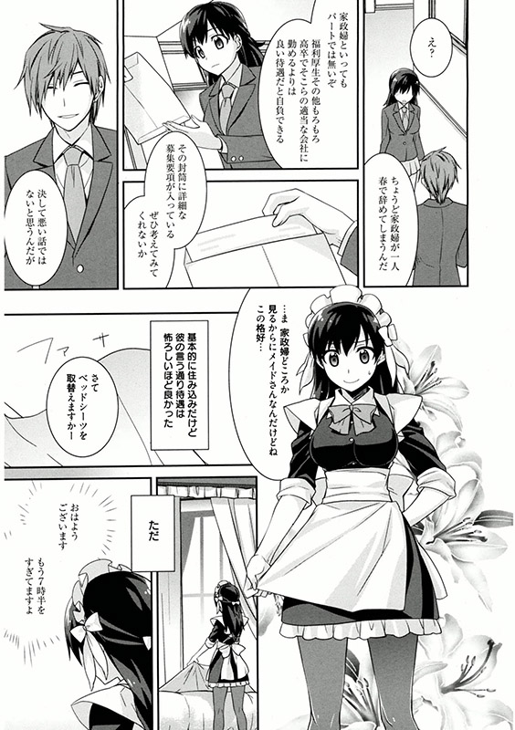 日本有数の大企業グループの御曹司で、頭脳も明晰・超イケメンの同級生の櫻乃峰慎人。父親が倒れ、大学進学をあきらめて就職先を探していた私は、慎人に彼の屋敷での家政婦の欠員が出たので、屋敷で働かないかと誘われ就職する。そして、毎日のように激しい求愛を受け、彼に抱かれて恋人同士になる。