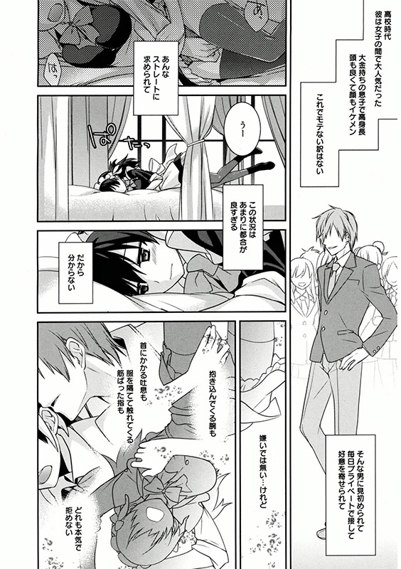 …ところが慎人は、○○の時から「将来の帝王」として世間一般とは隔絶した生き方をしてきたため、恋人に対してもひたすらストレートに欲望をぶつけてくる。恥ずかしい下着を着せられてその絶倫なパワーで果てしなくイカされ続けたり、逆に呼ばれて部屋に入ると、いきなりひざまずかされて口をつかわされてそのまま飲まされたり、様々なオモチャでじらされて絶叫させられたり…まるで性○○のような扱いなのに、彼の愛情はたっぷり感じるので始末が悪い。そのうち、カラダはどんどん進化して…。