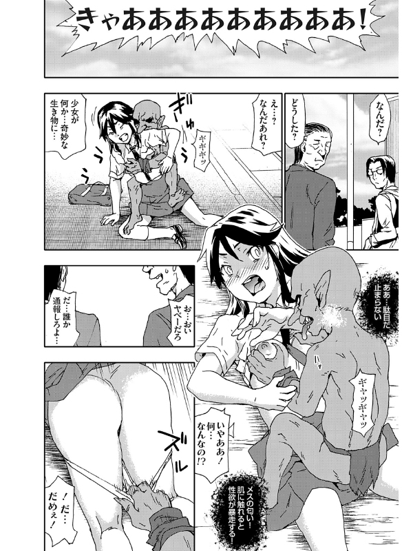 ある日の朝、主人公が目を覚ますと激しい頭痛に襲われた。昨日飲み過ぎたせいで完全な二日酔いになっていたのだ。それでもバイトに行くために眠い目を擦りあくびを一つ吐いたところ何か違和感を感じる。よく見ると手が浅黒く指の数も少ない。そして「ギャギャ」しか言葉を発せない。慌てて鏡の前に立つとそこには紛う事なきゴブリンの姿が!慌てた主人公は何とか自分の意志を伝えようと文字を書こうとするが全く書けない。スマホを操作しようと試みるがこっちもダメ。完全に文化的行動ができなくなってしまっていたのだ。そうこうしているうちにお腹が減ってきた主人公は食べ物を探しに外へ出る事に。すると通学中の○○の姿が目に入ってきた。気がつくと主人公は○○に襲いかかり種付け行為を始めていたのだった。理性では抗う事のできない何かがゴブリンにはある!君もゴブリンになって自分を解放してみないか?
