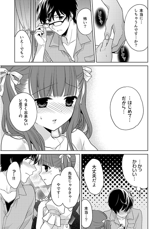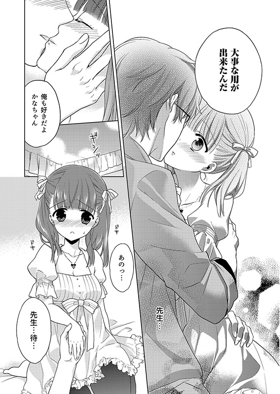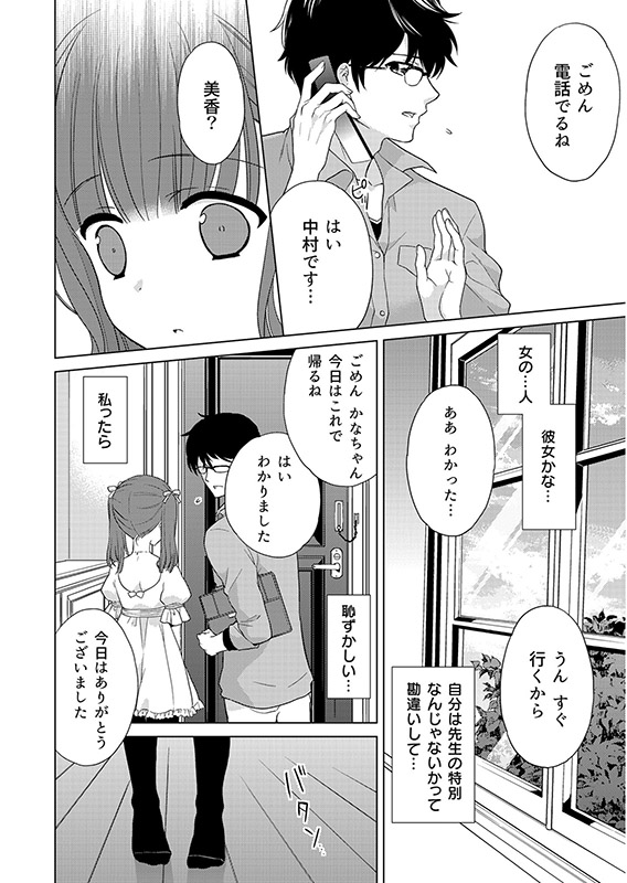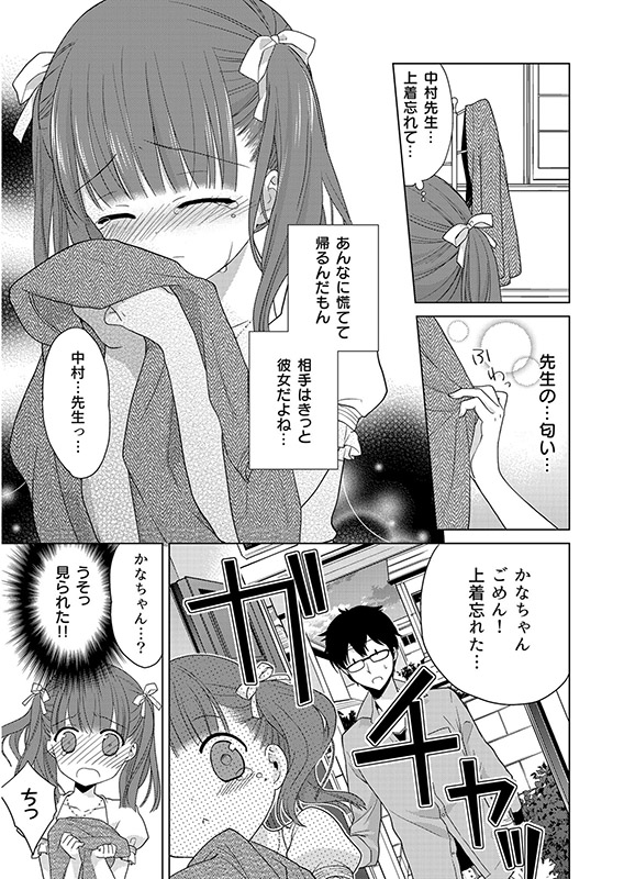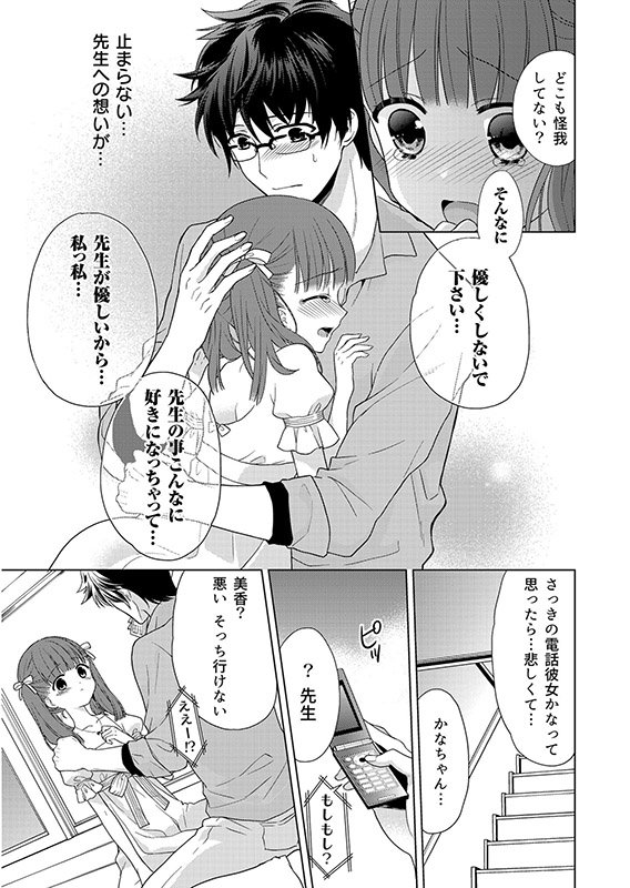 …やさしくて、いつも自分のコトを気にかけてくれる家庭教師の中村先生に、私はいつしか惹かれて行き、先生の「彼女」になりたい気持ちがおさえきれなくなる。しかし先生にとっては「ひとりの生徒」なのかと思うと、なかなか行動を起こせない。しかしある日…。はじめてで、どうしても恥ずかしく緊張してしまう私の手を握りながら入ってくる先生。