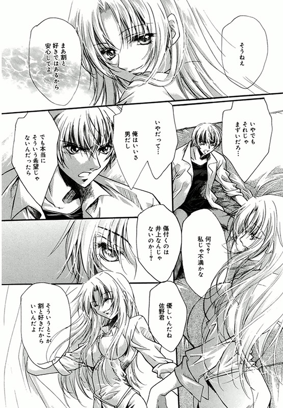 誰もが恋するイケメンの佐野。しかし彼は、恋愛に対してマジメ過ぎるあまり、自分の恋人を傷付ける事への不安で逆に自分を縛ってしまい、誰からの誘いも断っていた。そんなところにあらわれたのが「同性好き」をウワサされる美女・井上。彼女は積極的に佐野を誘い、自分が同性好きであることをカミングアウトしつつも身体を開く。とまどう佐野。なぜ…彼女は…。