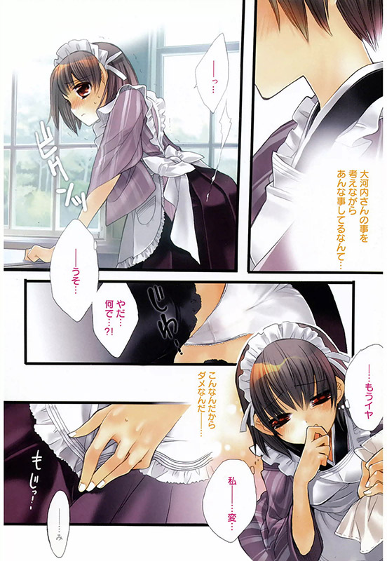 同じ職場で働く大河内さんは、イケメンで常に笑顔を絶やさぬ素敵な人。しかし、誰の告白に対しても仕事を理由に断るばかり。私の告白も受け入れてもらえなかった。ところがある日、仕事で大きなミスをした大河内から「実は君の事が気になって、仕事が手につかないんだ」と思いもよらぬ告白を受ける。それなら、と喜ぶ私に大河内は自分の性癖を告げ、そのために君の気持ちを受け入れることが怖い、と。それでも私、大河内さんとなら…と告げ、後ろからやさしく抱きしめると、彼は情熱的なキスとともに私の服を引き裂いて、激しく愛してくれた。体中に広がる幸福感…。