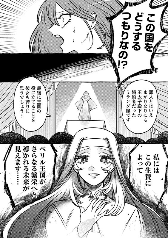 「王族の暗殺を企てる裏切り者だ!」と聖女に予言され、無実の罪で断罪されたミランダ。