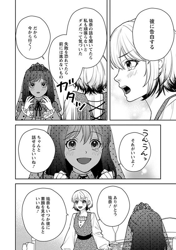 ソーヤの街にて「苦手克服の部屋」に挑戦中の祐奈。“素顔を見せていない自分はラング准将と対等な関係になれない”と抱えていた想いを吐露し、ついに自分の気持ちと向き合うのだった。そこに部屋に一人残された祐奈を迎えに、ラング准将がやってくる。ラングはすぐに祐奈の様子がどこかおかしいことに気づくが、彼女はそんな心配は露知らず……自身の手でヴェールを外してしまう。祐奈の素顔を目にしたラング准将は、胸に秘めた想いを抑えることができなくなって――!?